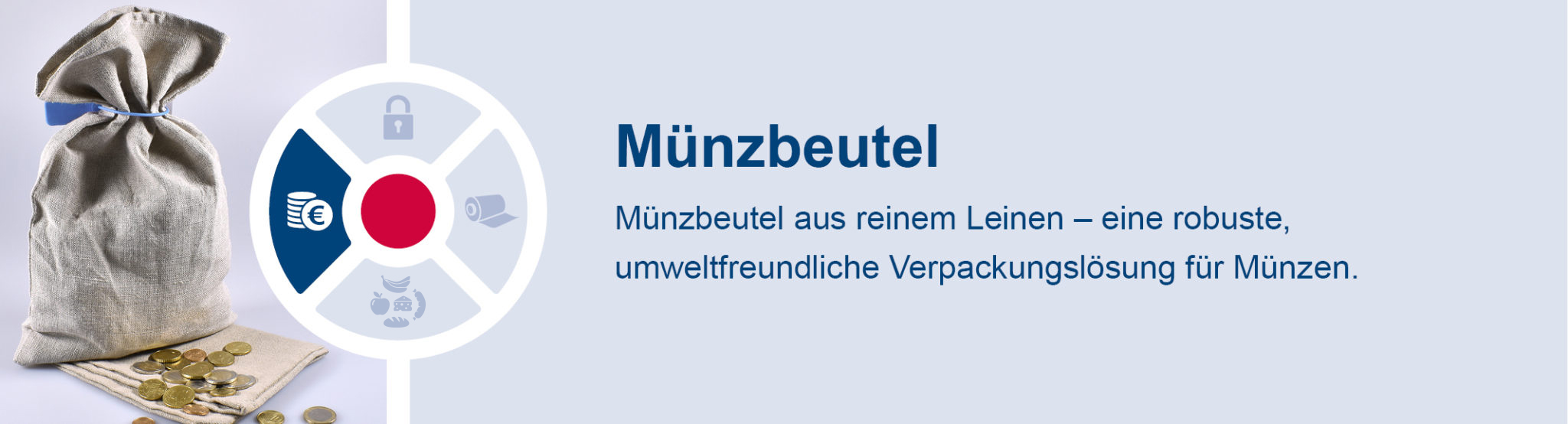 Für die Verpackung von Münzen, aus Reinleinen gefertigt. Zur Identifkation können Beutelfahnen eingesetzt werden.