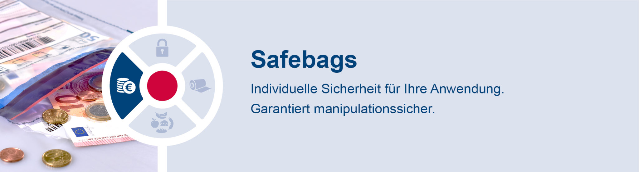- Safebag-Typ:. Je nach Anwendungsfall werden unterschiedlich hohe Anforderungen an die Sicherheitsmerkmale gestellt. Im Wesentlichen bedeutet das, je höher der transportierte Wert und je gefährdeter der Transportprozess, desto höher muss der Fokus auf hochwertige ausfallsichere Sicherheitsmerkmale gelegt werden.