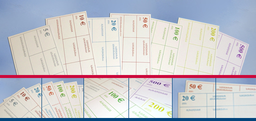 Le dessus est imprimé selon la valeur faciale des billets et personnalisable au logo de votre entreprise, le dessous est sans impression.